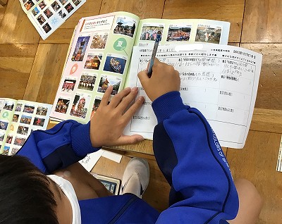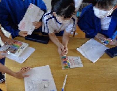 英語週間に入り、英語科での英語ミッションにチャレンジする児童が多い中、球技大会に向けての応援ポスターづくりの下書き作成や、話合いをしている4年生の姿もありました。休み時間もチームで集まり、意見を出し合って協力している様子でした。