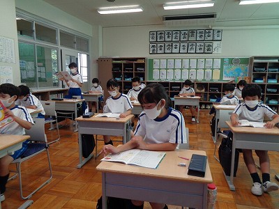 1時間目の国語の学習は「ごんぎつね」の最後の場面を学習しました。ごんの行動と心情を整理したあと、今日は兵十の行動について文章の中から探します。次回は、兵十の心情についても全員で考えていきたいと思います。