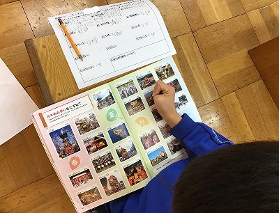 今日の総合の学習では、学習発表会を行うにあたって、調べていくテーマを決めました。それぞれに、関心のあるテーマをあげ、「観光」「文化」「歴史」の三項目に分かれて発表を行うことに決まりました。