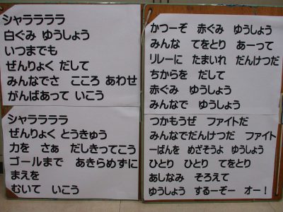 例年にはない、「応援歌」も作りました! 運動会の中休み頃に、各組が和気あいあいと歌ってくれることと思います。(応援合戦では歌いません。)