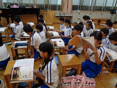 音楽授業では、リコーダーと合唱で「ソーラン節」を奏でました。「文教ソーラン」の激しさとはひと味違いますが、親しみを持って練習しています。