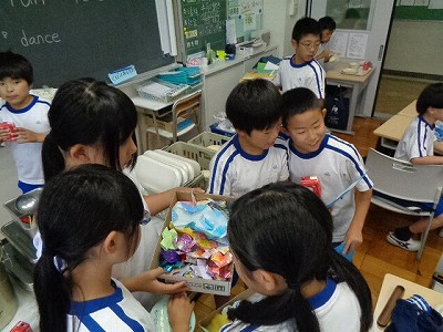 また、運動会当日にお誕生日を迎えたお友達、明日に誕生日を迎えるお友達を、給食時にお祝いしました。誕生日係だからとはいえ、もらう人のことを考えて、手作りながら凝ったものを用意していて、どれを選ぼうか?と2人とも嬉しく悩みながらプレゼントを選んでいました。