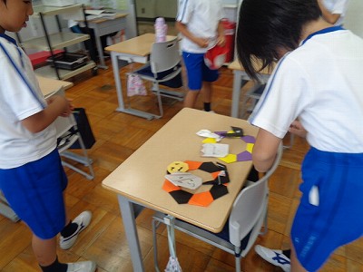 朝の教室では、飾り係さんが飾りの仕上げをして、教室に掲示してくれていました。