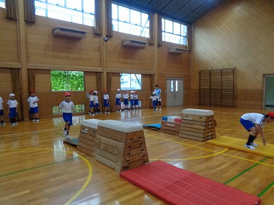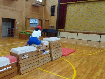 とび箱ととび箱の間の段差で一苦労でしたが、そこを頑張って、高いとび箱に移動できています。