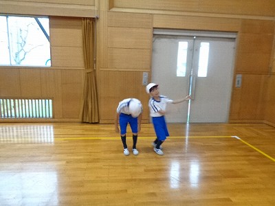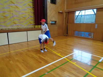 最後は、ペアになって馬とびの練習をしました。相手のとべる高さを考えて、ペアで相談しながら上手に馬とびができました。