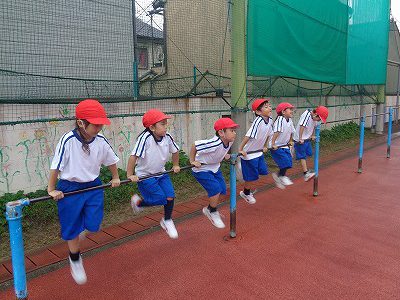 今日は「跳び上がり」「自転車こぎ」「つばめ」などにチャレンジしました。