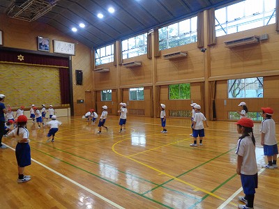 その後は「一輪車」の学習に入る予定でしたが、雨が降ってきたため、体育館に移動しました。