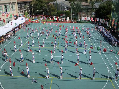 一致団結して、手旗の動きを合わせることができました!