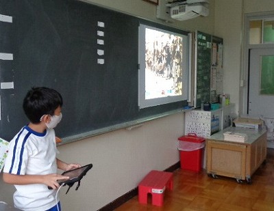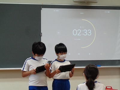 その後は教室に戻り、朝の会です。2学期から始まったNEWS係さんが、台風の情報やノーベル賞についてのニュースなど、朝のニュースを5分間で伝えてくれています。