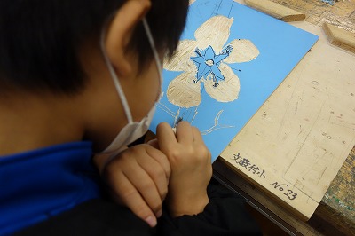 先週よりは、少しリラックスして活動を進めることができていたようです。それでも、やはり彫刻刀を扱っている間は、みんなよい緊張感をもって無言で進めていました。