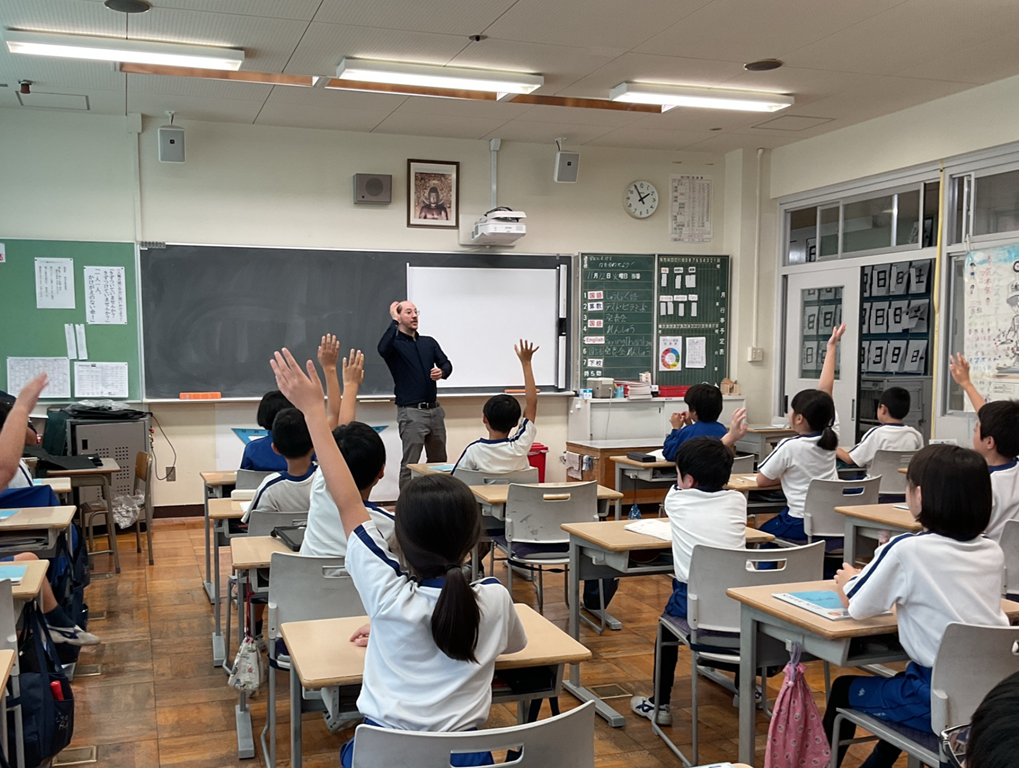 3年生では、毎日日直2人が1人10問ずつ、かけ算の筆算の問題を作り、皆で計算練習をしています。
