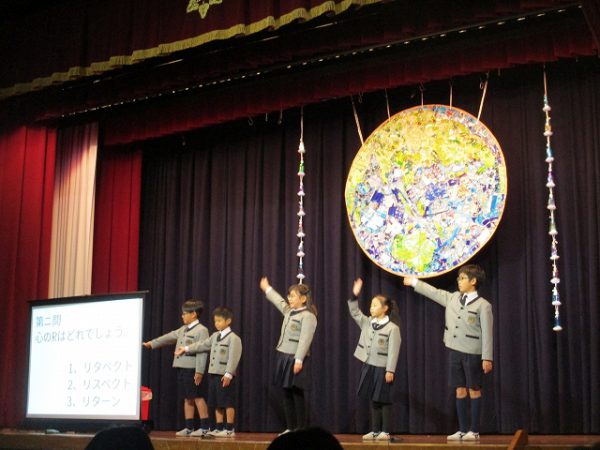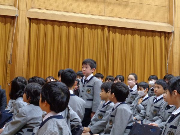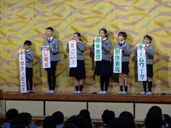 「(略)... 発表する時も、発表を聞く時も、しっかりめあてを持って、みんなの力でこの発表会を成功させましょう!」