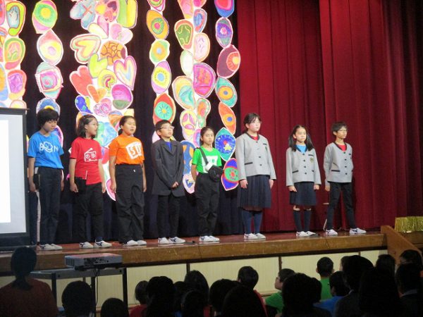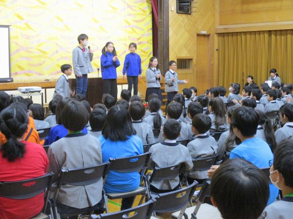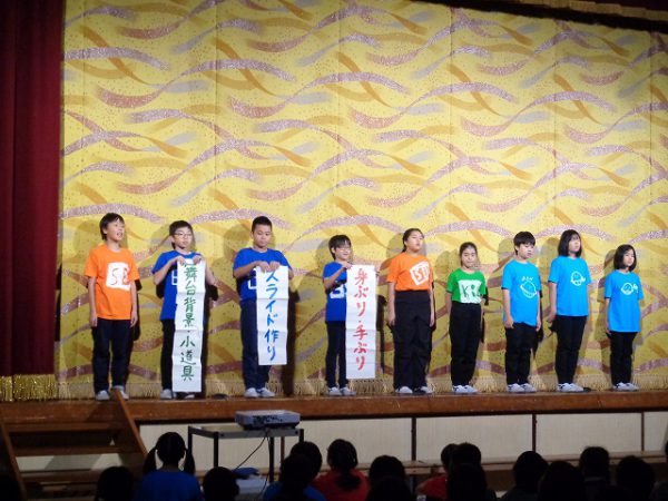 6月実施の「学びと力の発表会Ⅰ」に引き続き、小規模校ならではの全校児童の参加です。