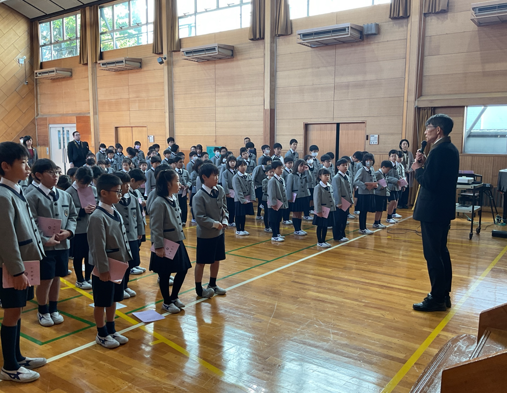 始めに学びと力の発表会Ⅱを振り返って、発表者・発表学年のがんばりを褒めて下さいました。