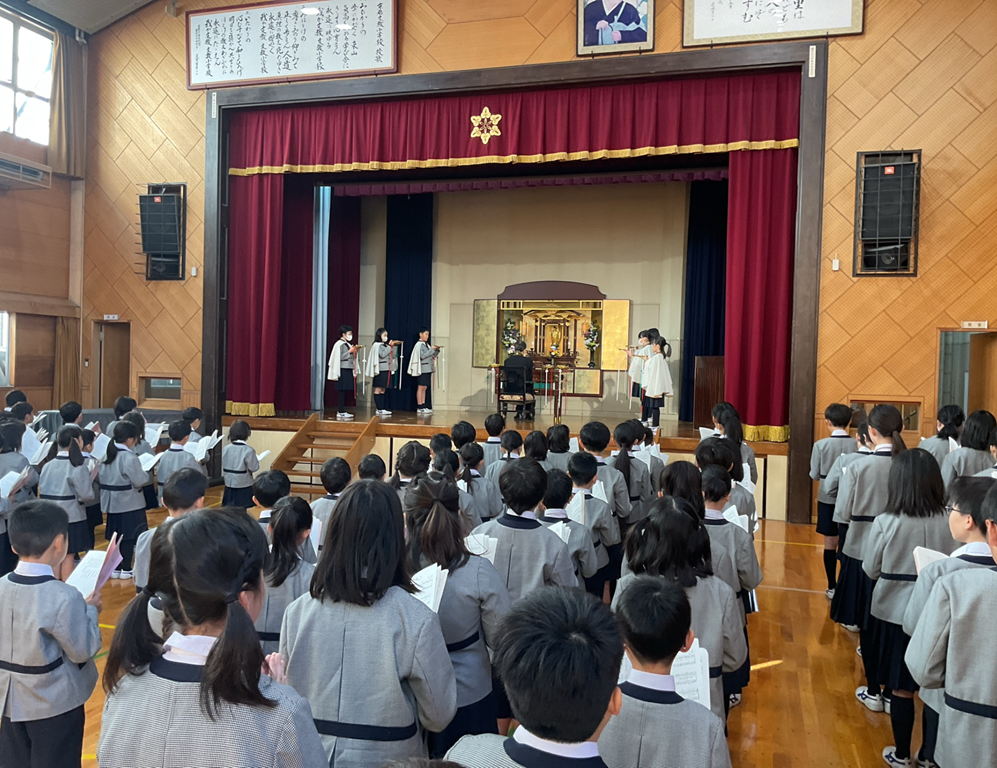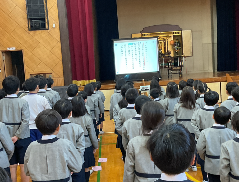 2年生は、「方丈記」を発表しました。他の学年も少し口を動かして、一緒に音読しているようでした。