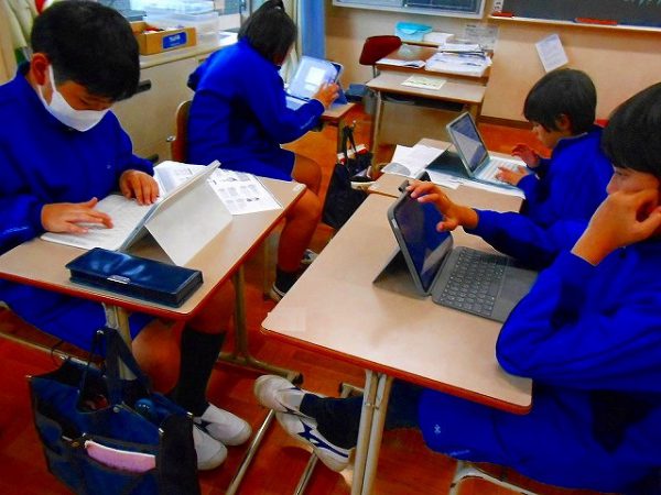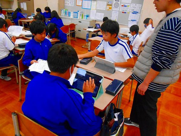 「5大栄養素」の学習をしています。班で栄養素を一つずつ担当し、調べ学習を進めているところです。