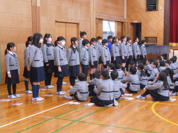 今日の音読集会は、高学年の担当でした。5年生は、「固有種がおしえてくれること」の一部分を発表しました。