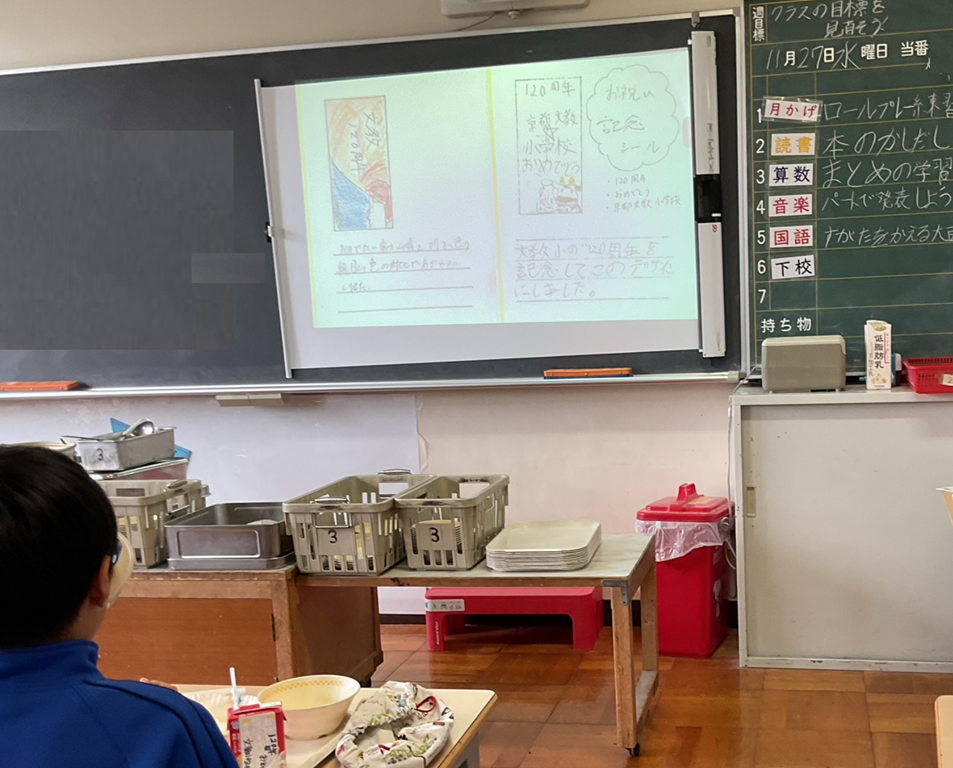 牛乳に食生活委員会から全校へ募集した「記念シール」をはりつけています。