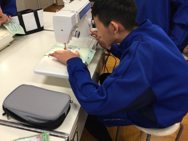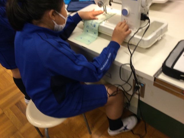 おさらいの「コースター作り」では、縫い目の回転を思い出し、軽快なミシン音を響かせていました。