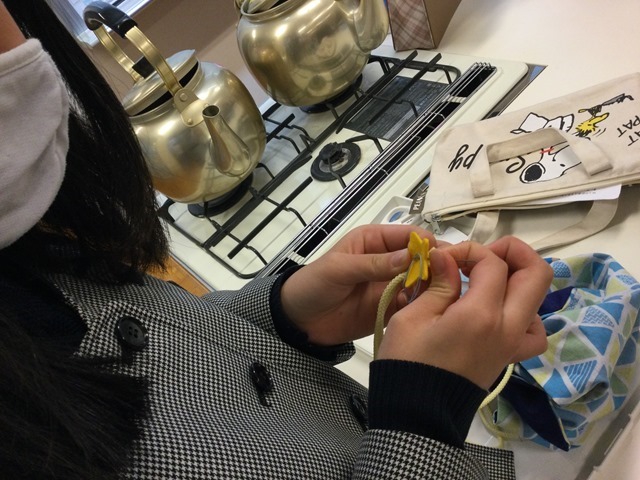 「ひも通し部分のミシン縫い」「ひも通し」を行った後は・・・