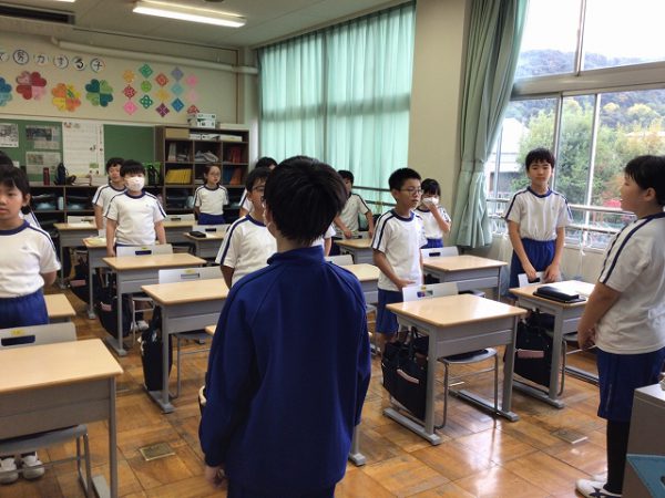 8時15分頃になると、遊んでいた子どもたちが運動場から戻ってきて、どの子も取り組んでいます。