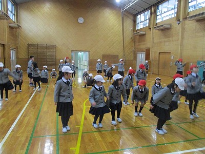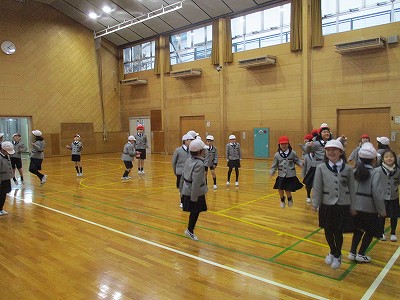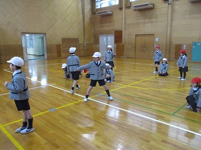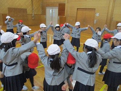 英語朝体操の「火星人さん」に似た遊びです。大盛り上がりでした。