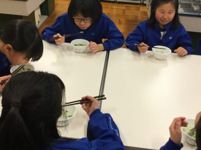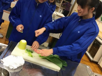 1年間の、そして3学期の健康を願って、さっそく青菜切りが始まりました。