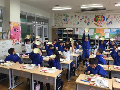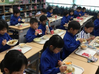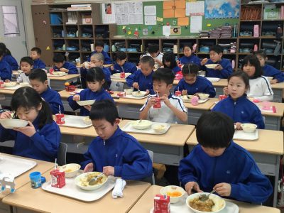 みんなそろっての給食はうれしいです。