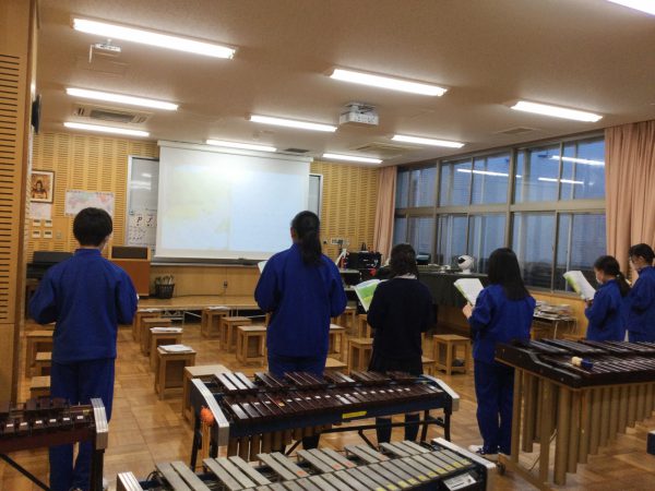 入試前の少ないメンバーではありますが、このあと二部合唱に取り組みました。相手の音を聞きながら歌うことは難しいです。パート練習を生かし、2つのメロディが音楽室に響きました。
