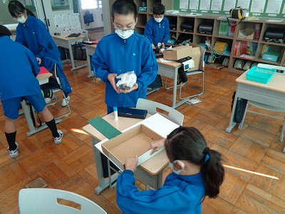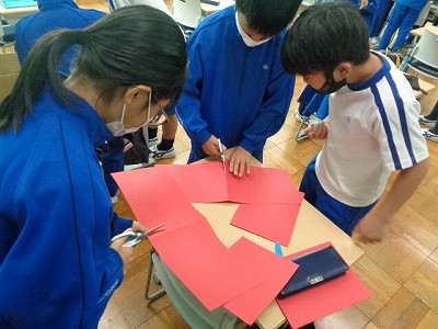 休み時間は、総合の小道具作りが始まりました。発表の中で使用するものを、手作りしていきます。それぞれ担当に分かれて、試行錯誤をしながら作っています。完成が楽しみです!