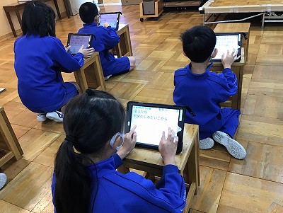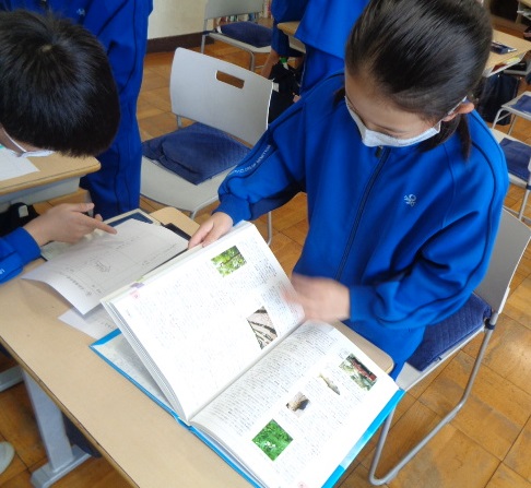 今日は、国語が2時間ありました。2時間目は、図書室の「百科事典」で、百科事典の使い方について学習します。インターネットで検索する事が簡単になっている中で、百科事典というものの存在すら知らなかった4年生が多く、「初めて見た」という声が多く上がりました。百科事典を使って、実際に言葉を調べたり、問題を作ったりしながら、百科事典に触れる1時間になりました。
