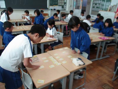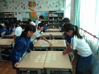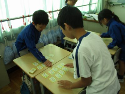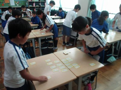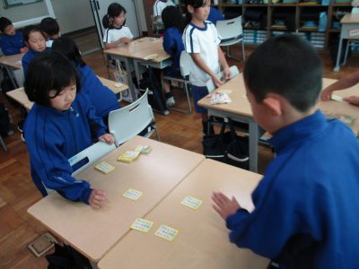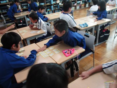 教室での黄色カルタ音読が発声練習(!?)となりました。