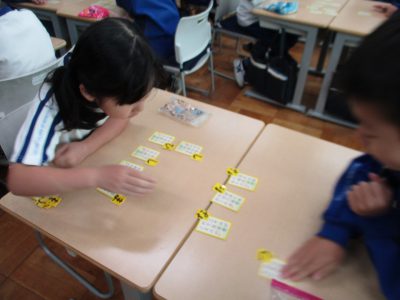 気持ちよく歌い上げたあとは、教室で黄色カルタとりを・・・