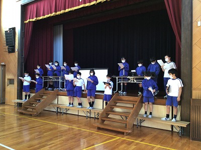 朝の冷え込みをこらえて登校してきた5年生。ネックウォーマーや手袋を身につけている姿に、近づく冬を感じます。
