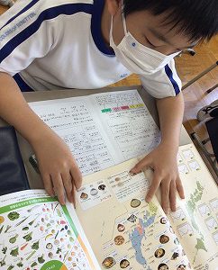 残り20分程で、次の単元「ふりこの動き」の導入をしました。まずは教科書を5分間ほど読みます。単元全体の内容を把握するためです。