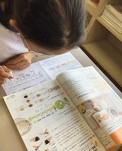 図書室での読書の前に「思考力トレーニング」のテキストに取り組んでいます。今日のお題は「お知らせ文」。雨で予定が変更になったことを知らせ、代替案の内容や日時、持ち物などを連絡する案内文を書きます。