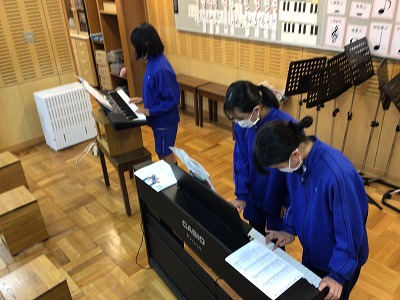 有り難いことに“暖房”機能が設備されているので、暖かい中で練習に取り組むことができました。発表全体の流れを、みんなで共通なものにすることができてきたので、“演じる”ことを少しずつ取り入れています。