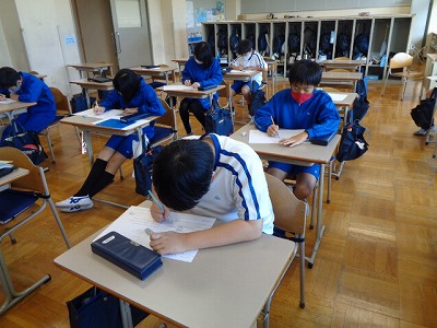 小テストで満点だった人は自信を持って、間違いがあった人は本番までに直しをして、昼休みの漢字大会に臨むように伝えました。