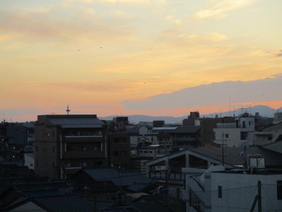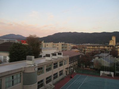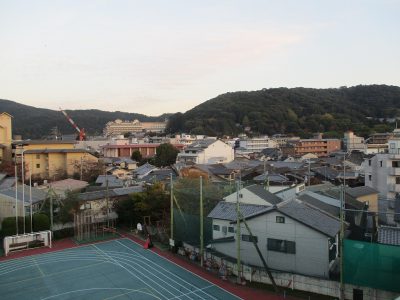 文教小学校から、大文字・比叡山方面の夕暮れ・・・