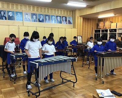 木琴・鉄琴パートは、伴奏のフレーズや一つの音をリズムに合わせて奏でます。