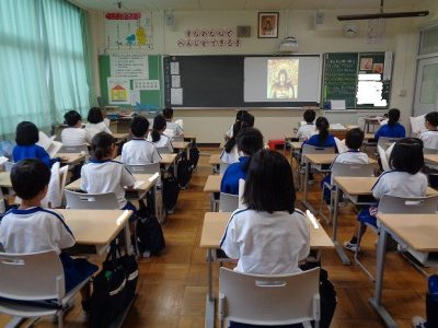 3・4校時は、韓国のトンネ小学校6年生との交流会です。