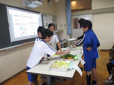 最後に目標量の野菜を毎日食べるには、どんな工夫が必要か、みんなで考えました。