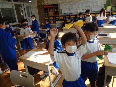 1時間目の学活は、発表で使うアイテムをいくつか作りました。