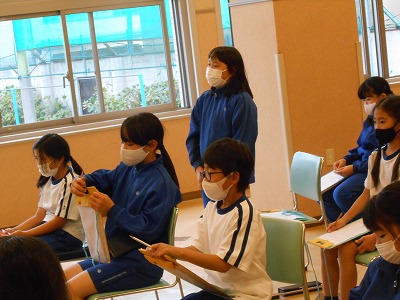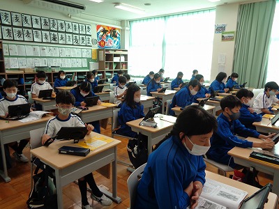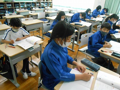 2校時は「話す力」のテストに向けて、スピーキング練習をしました。