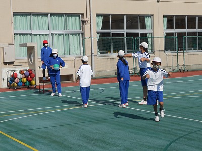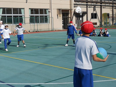 4時間目の体育では、ポートボールを行っています。今日は、チームを変えてミニゲーム大会を行います。