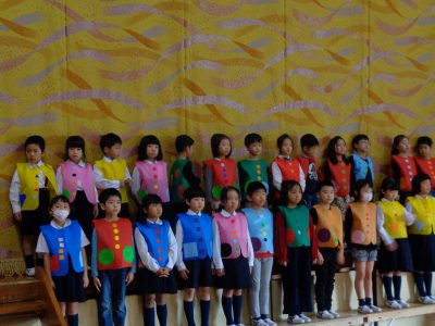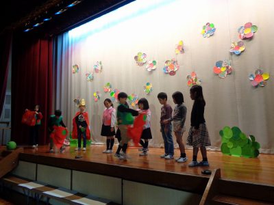 体育館を暗くして、スポットライトを当てながら、「はじめの言葉」「鑑賞のポイント」「舞台発表」を通しました。
