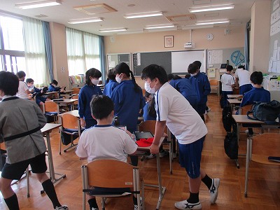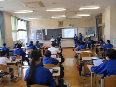 4時間目は、教室でチームの最終的な打ち合わせと発表の練習をしました。
