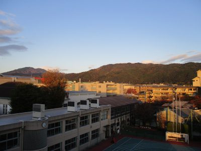 東山一帯を一望できる本校。