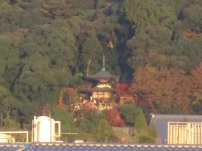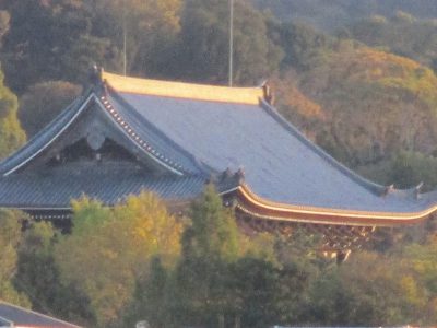 本校屋上から、永観堂の多宝塔、南禅寺三門、知恩院の三門が見えます。