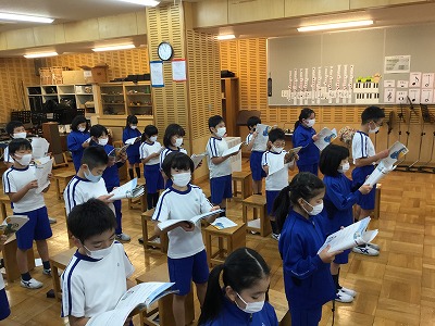 前奏を聞くと、昔の感じやさみしい感じが伝わります。「題名を聞いた時のイメージと全然違う!」と反応してくれた3年生。